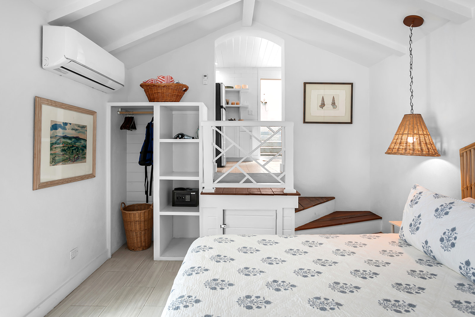 Blue Bungalow perches just feet above the sparkling harbour waters, offering expansive views of local fishing boats and the daily bustle at the Government Dock. Fully renovated in 2022, the bungalow was taken down to the studs and rebuilt with all-new features, including a charming kitchen, a bathroom with a spacious shower, a cozy bedroom, and a large private outdoor patio—perfect for morning coffee or sunset cocktails. Ideal for couples or solo travelers seeking a serene island retreat.