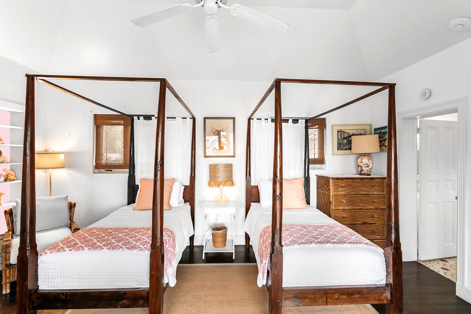 Private chefs for dinners can be arranged as well. Additionally, a new reverse-osmosis water system and generator are provided for the guests comfort. Can be rented as a 5 bedroom with the addition of Blue Bungalow; a separate 1 bed/1 bath cottage with its own entrance, outdoor shower and outdoor dining area – an extra fee of $400 per night.