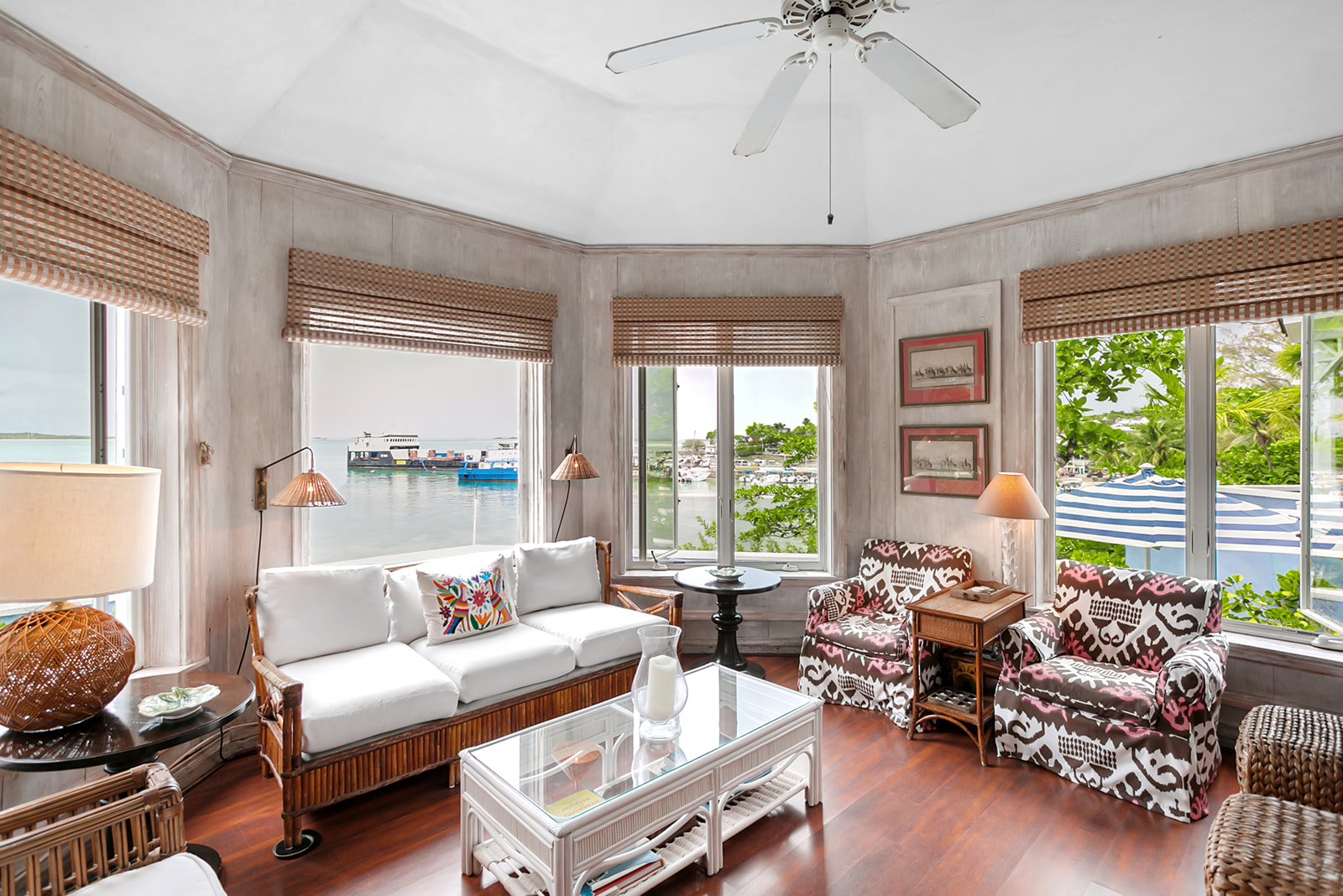 The view across the bay to Eleuthera is beautiful, especially at sunset, and to the right is the charming waterfront and town dock. Swim in the pool and watch boats coming and going. The Blue Ruin’s location makes it perfect for walking along Bay Street and to some of the island’s best restaurants.