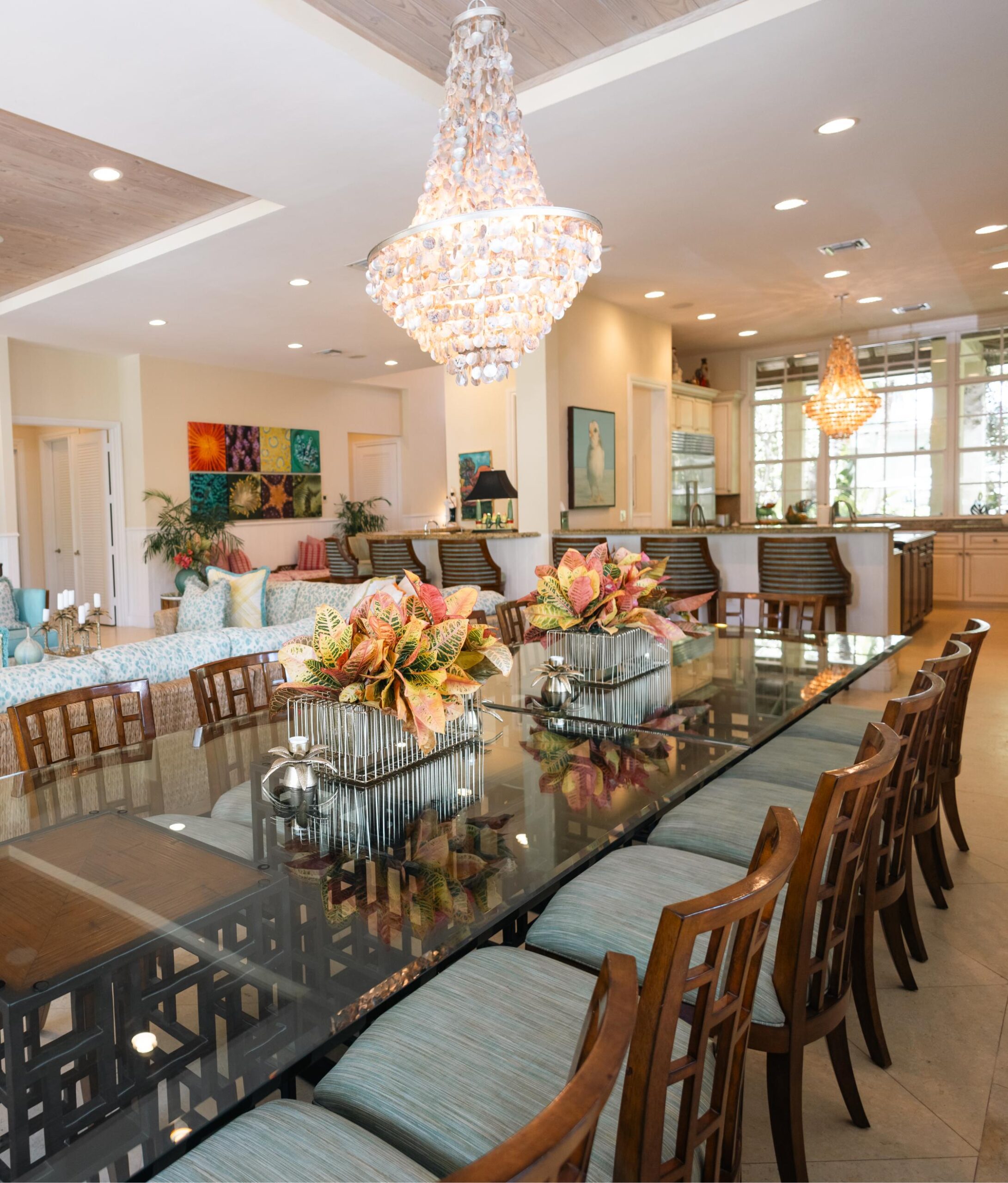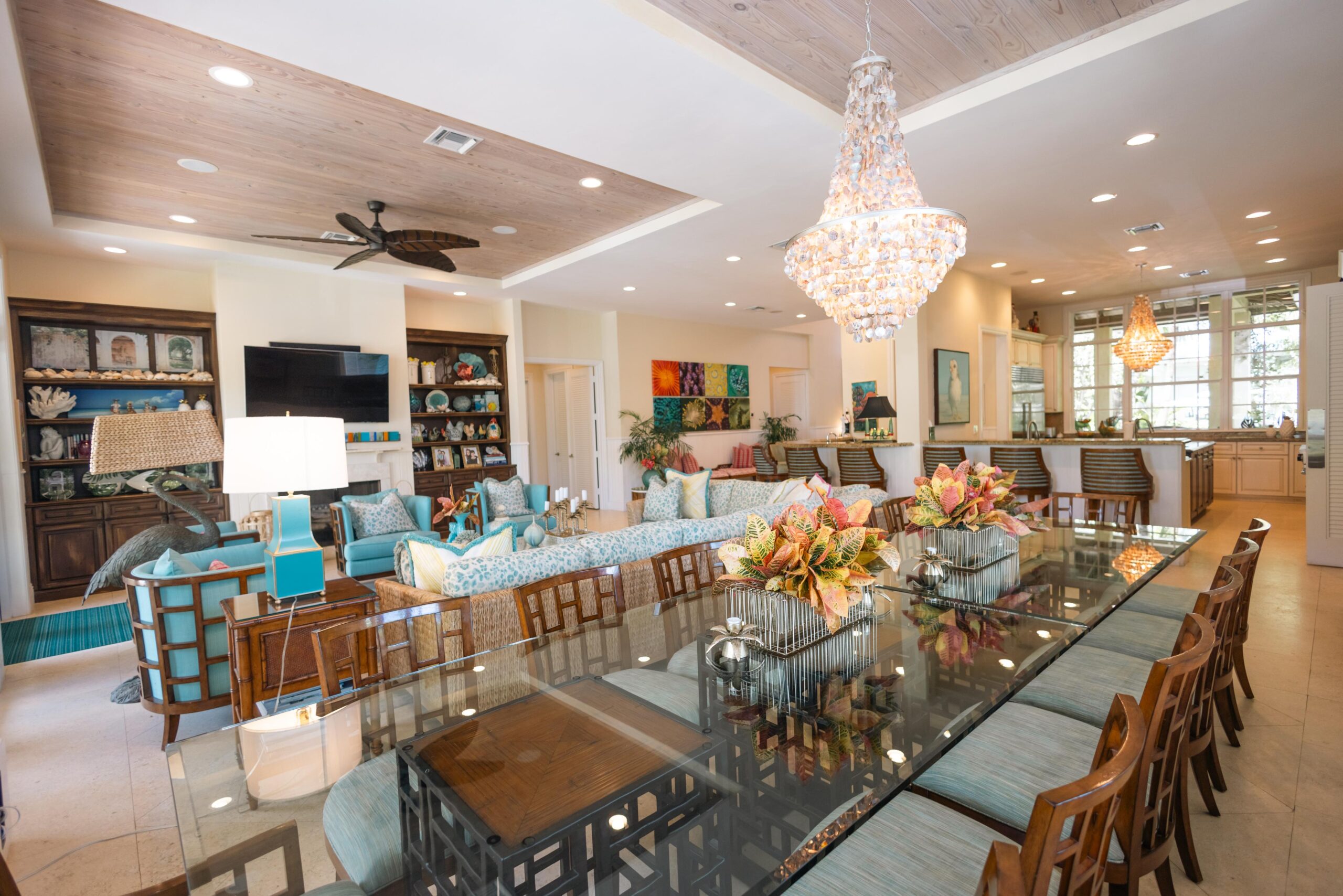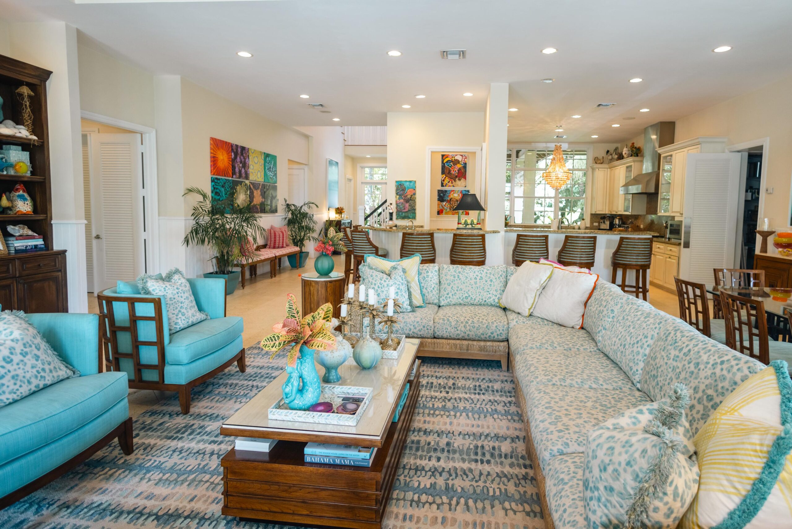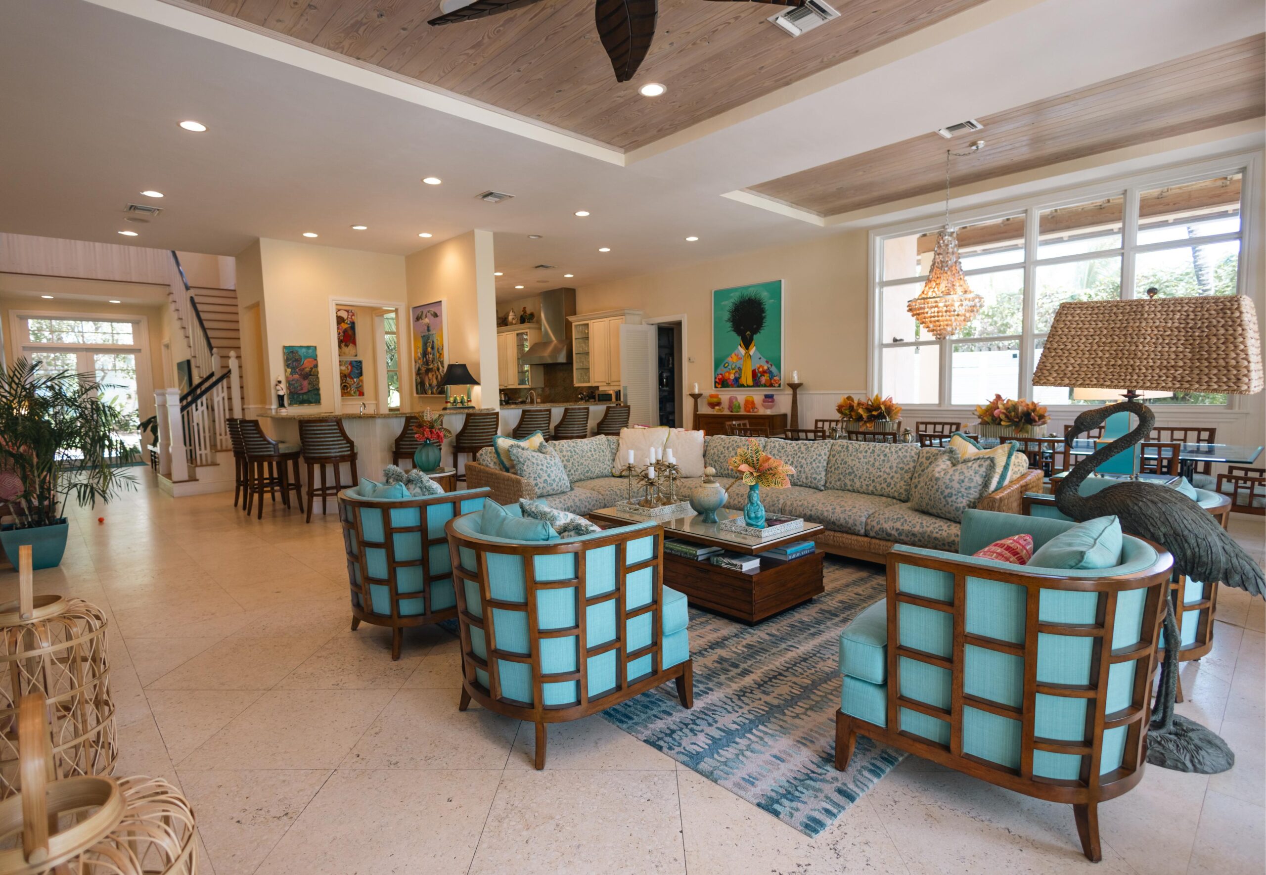There are many games: outdoor pool table, ping pong table, foosball table, board game collection, croquet, sea kayaks, paddle boards, and a floating Aqua Lilly Pad to enjoy from the dock. There is a top-of-the-line entertainment system in the great room and 2 master suites, and Sonos speakers are integral inside and out.  The 2,500 sq ft of covered porch and spacious patio make this Harbour Island home the perfect vacation rental. The dock is big and beautiful, offers multiple power and water locations, steps provide easy access to the ocean, multi-level seating at the end of the dock is ideal for fishing, playing, and viewing sunsets. Quality furniture creates an attractive space where people will want to spend their days and nights.