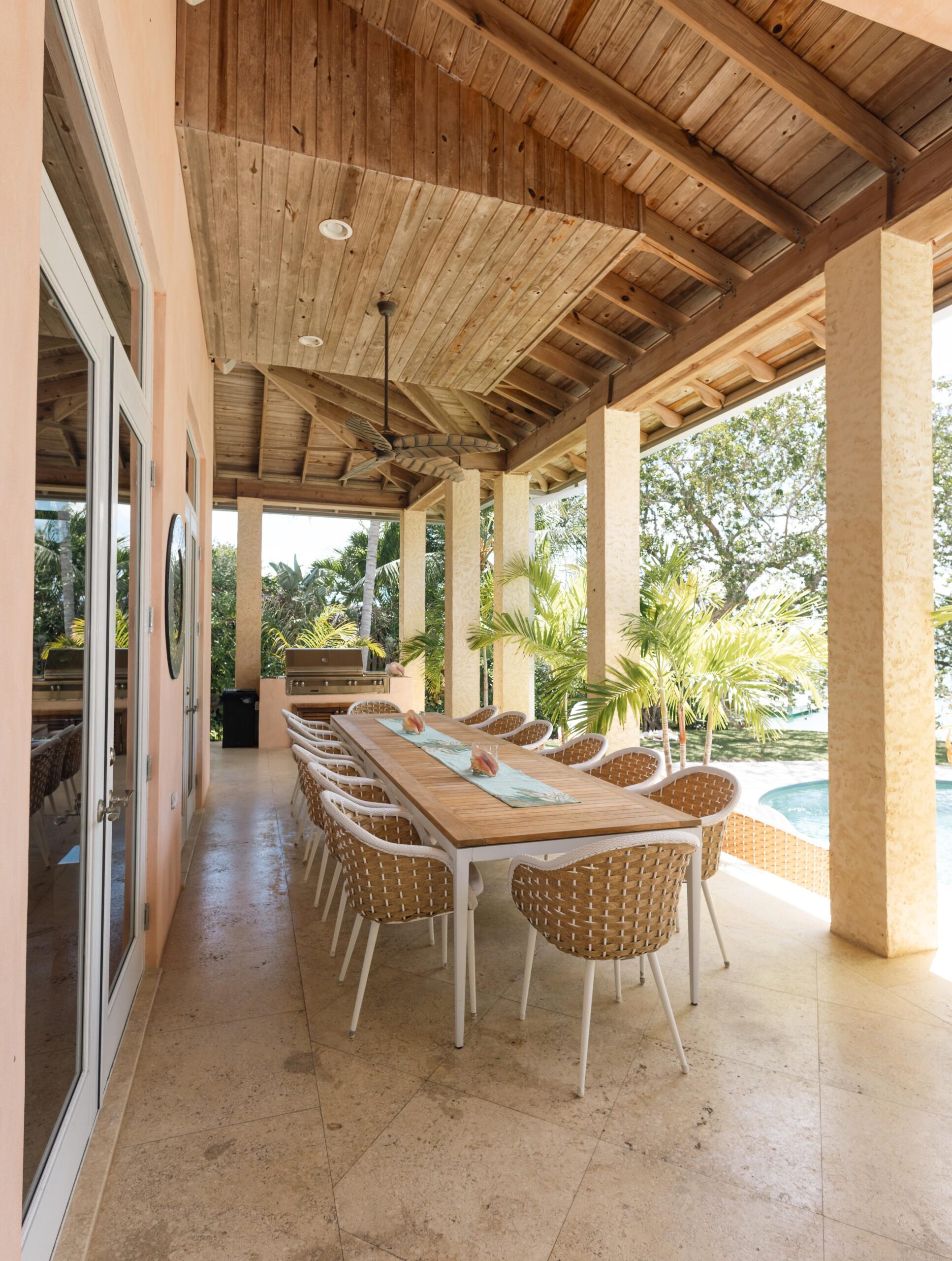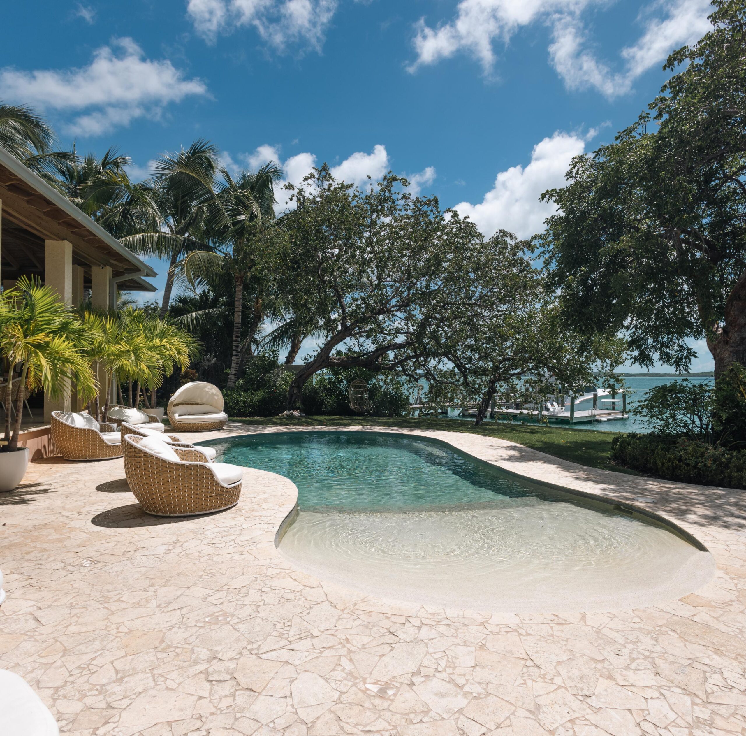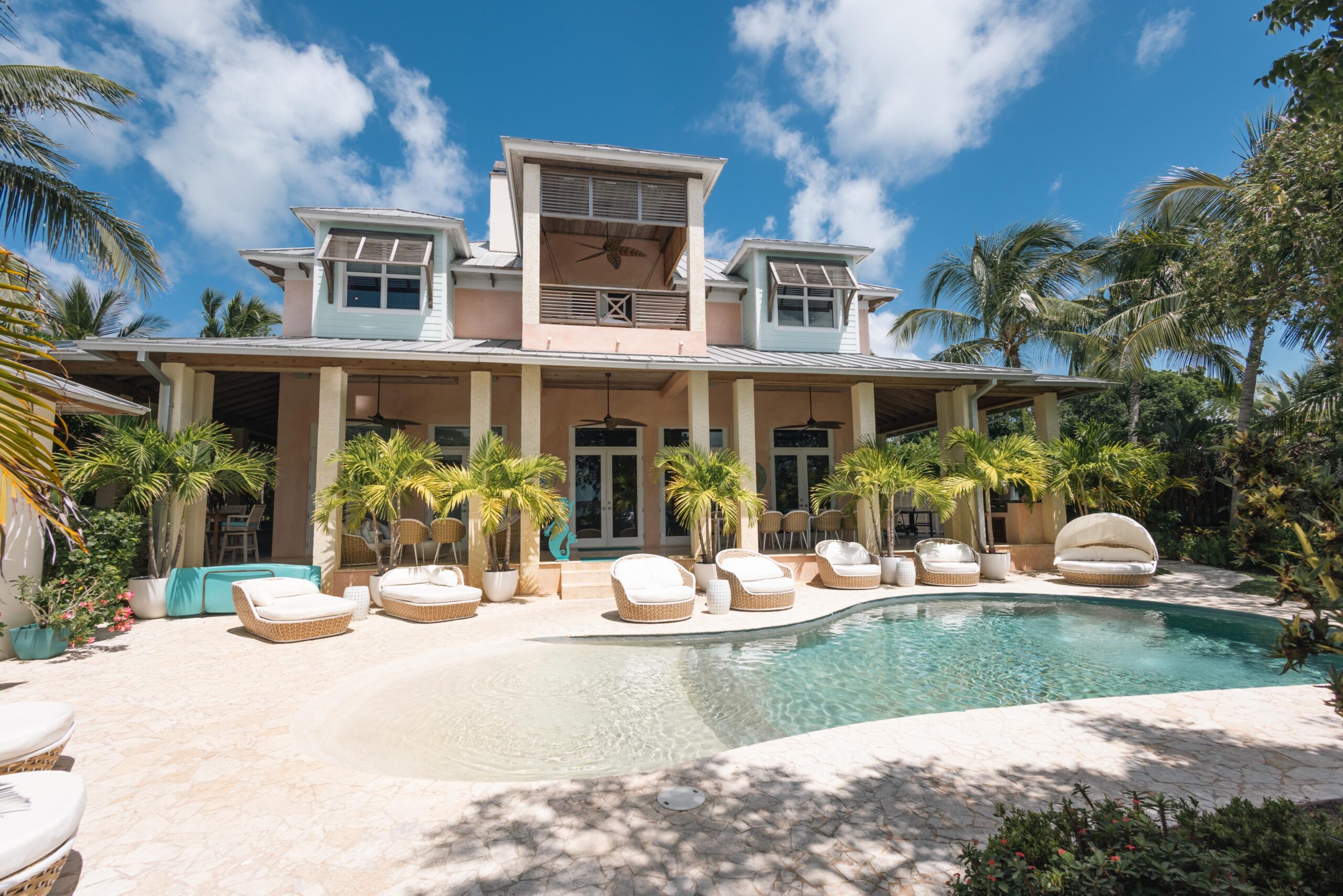 Buttonwood a 5 bedroom 6,000 sq ft home features amazing sunset views from an OCEANFRONT harborside lot that is a mere 5-minute drive or walk to the famous Pink Sand Beach. Private palapas and luxury beach furniture await guests. All the benefits of a BAY and BEACHFRONT experience, with the NEW amenity of our Gecko Hill pickleball and a gaming area.