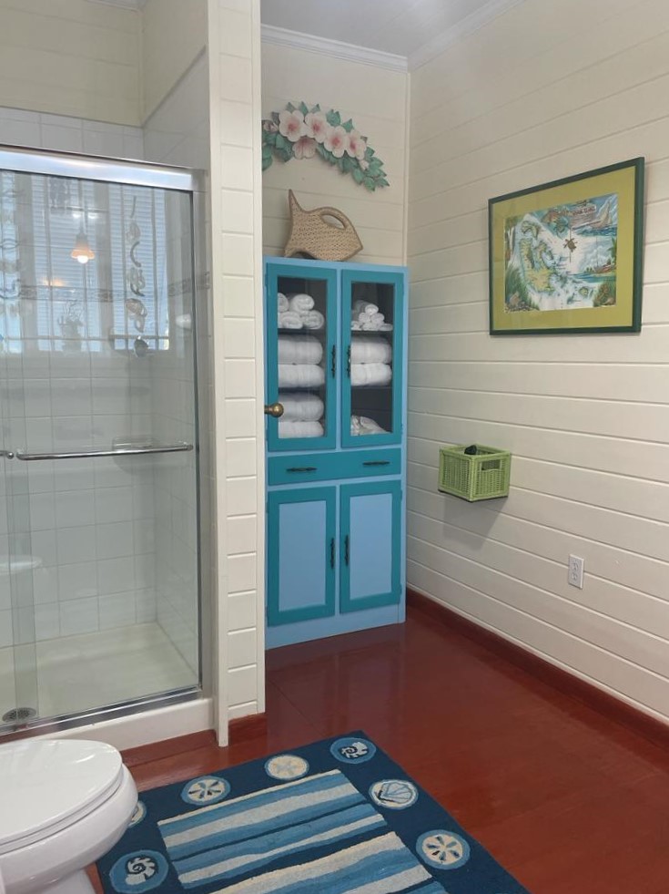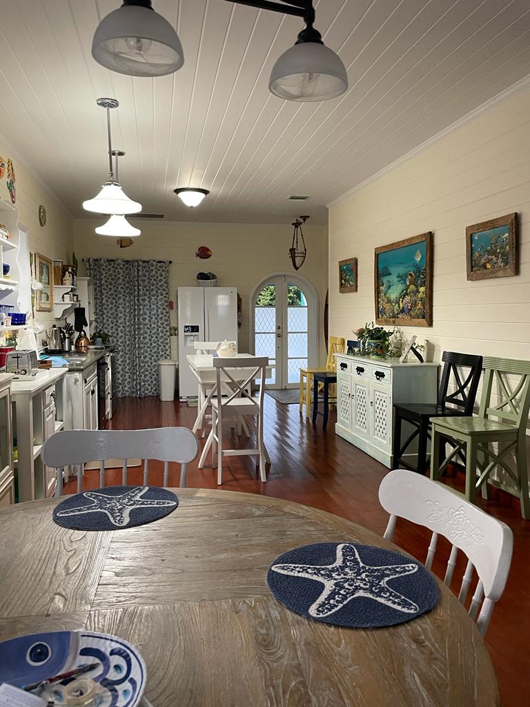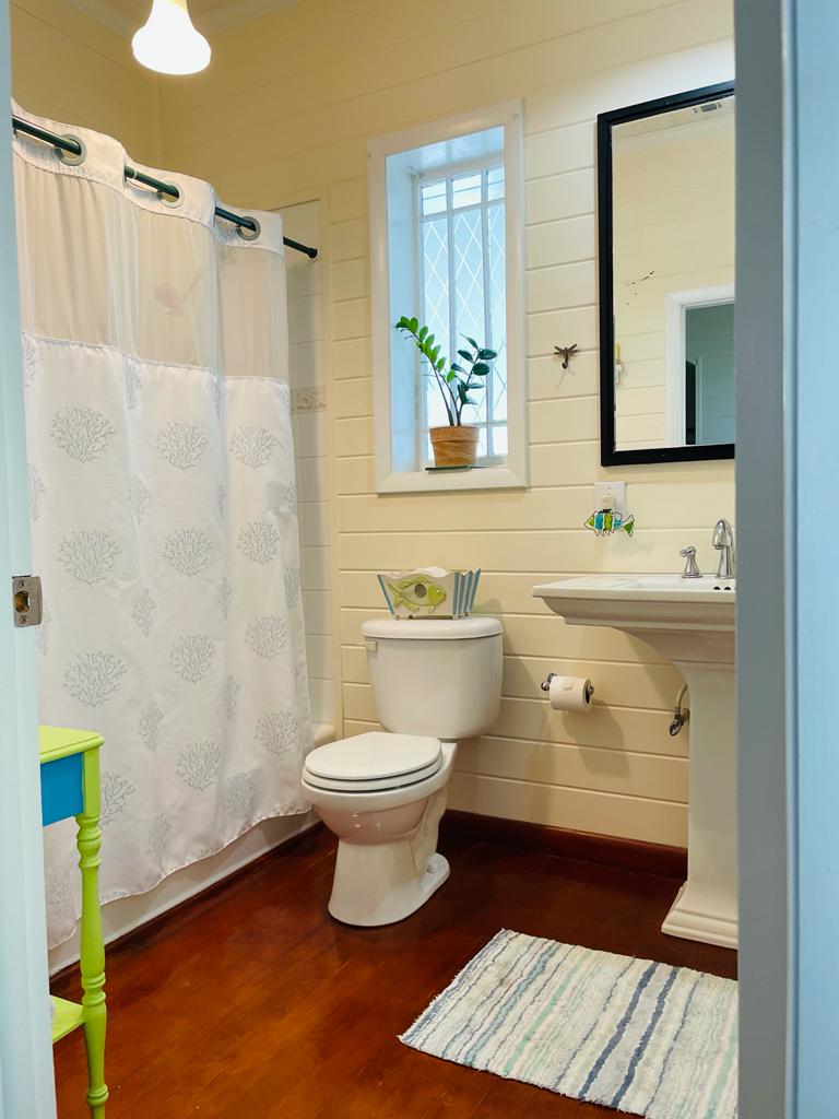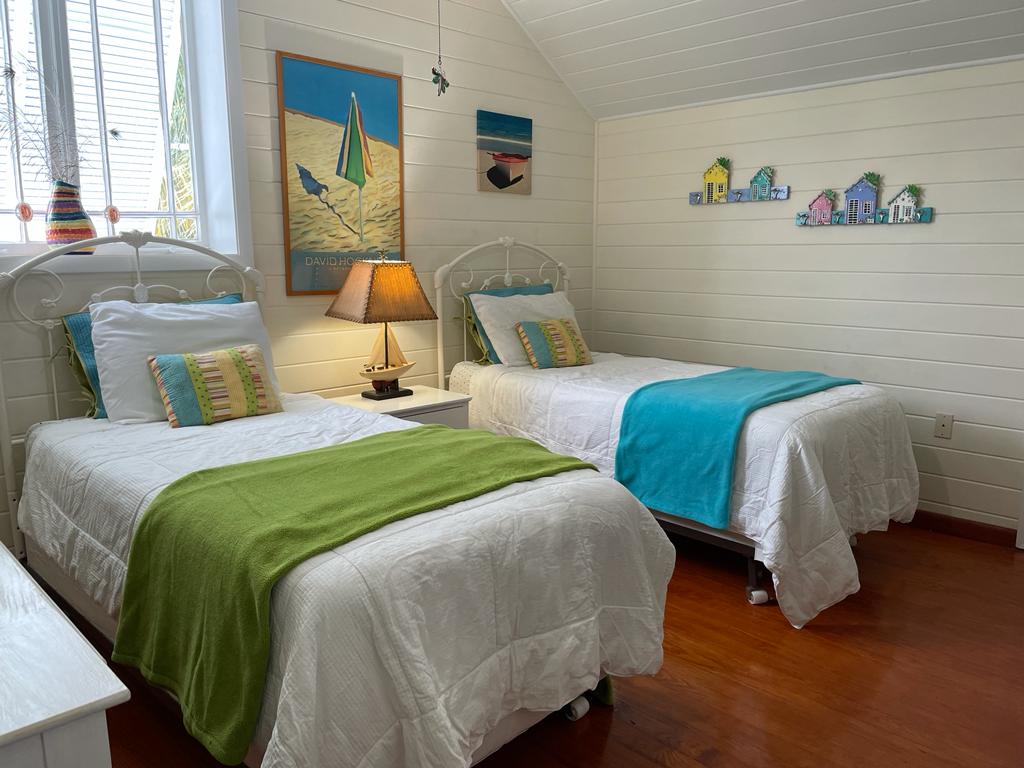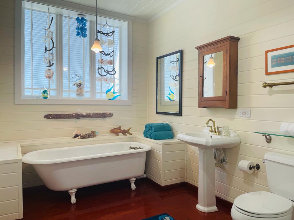 Palmetto Cottage is ideally located on the gorgeous white sand beach that stretches the northern shore of Spanish Wells, with views from the house that will take your breath away. The home offers an outdoor covered porch great for evening meals or a relaxing morning coffee. There is also an additional sunbathing deck near the shoreline where you can sit and bask in the sunshine as the kids play in the shallow waters below. Each of the home’s 3 bedrooms has its own private bathroom, two of which are upstairs and one downstairs. There’s also a 1/2 bath located near the main entrance to the house, great for visitors to use. Has fully equipped open kitchen complete with a large bar height table that seats 8 and an additional dining table that seats 4. The comfortable living area opens onto the covered ocean view porch outfitted with cozy seating and outdoor dining. The home is fully equipped with central A/C throughout, Cable TV and Wifi Internet to make your stay as convenient as possible. There is also a full laundry with washer and dryer and an outdoor shower. Come and make Palmetto Cottage your vacation getaway where dreams become reality!