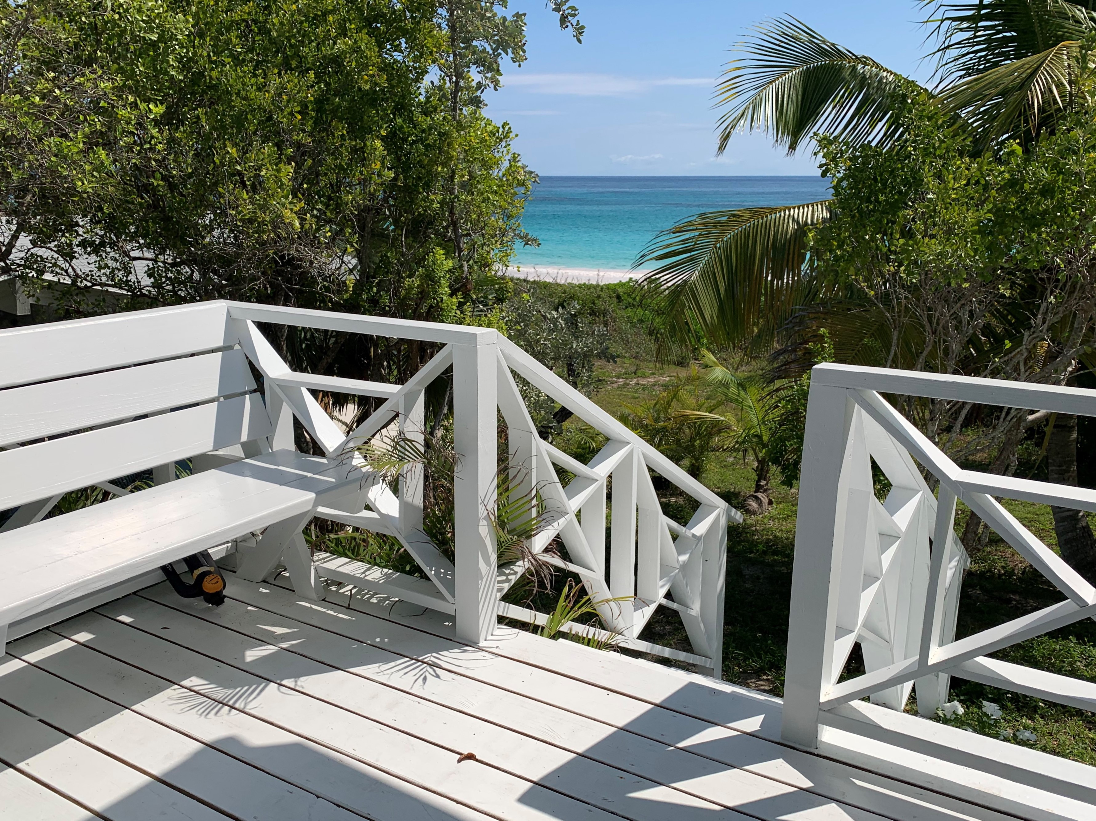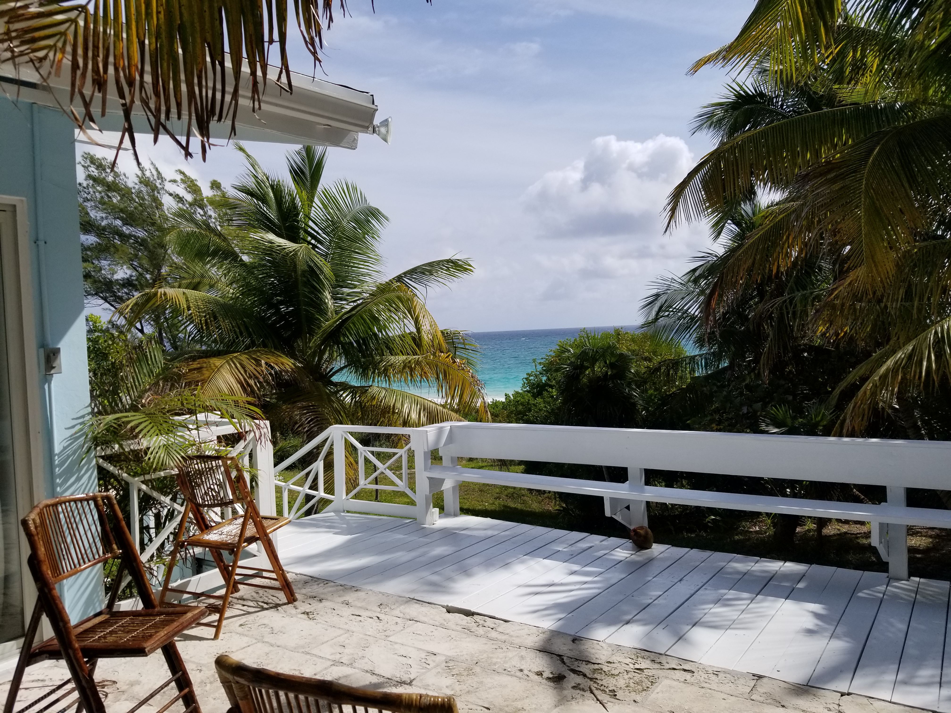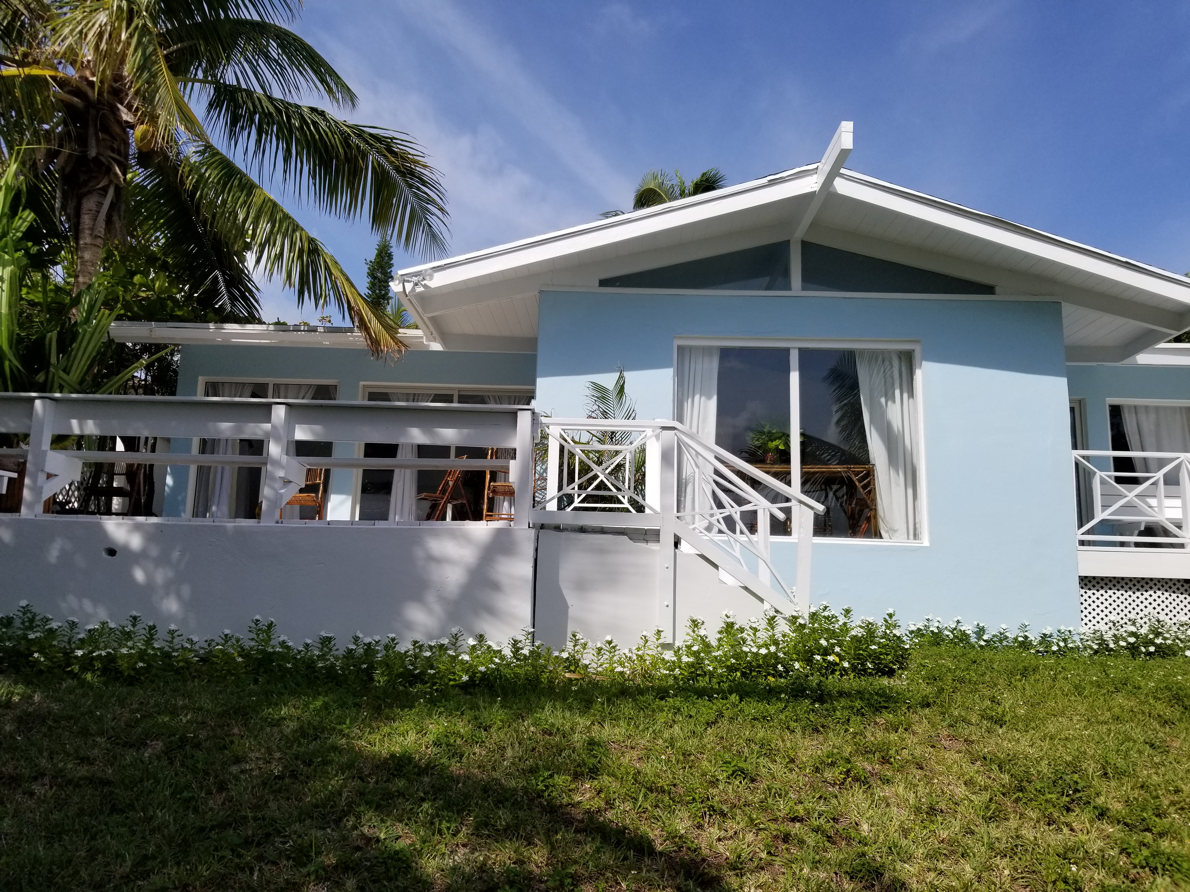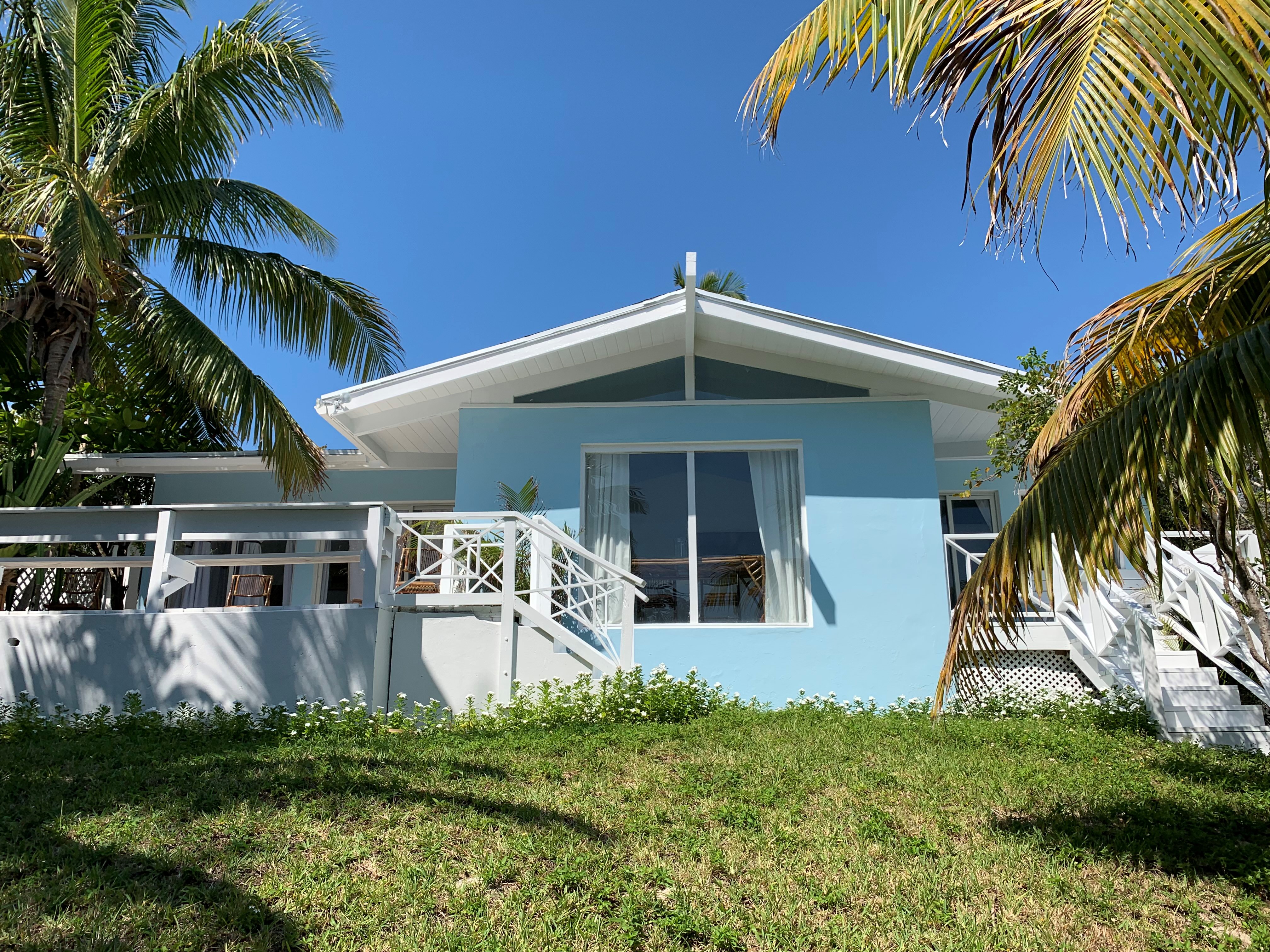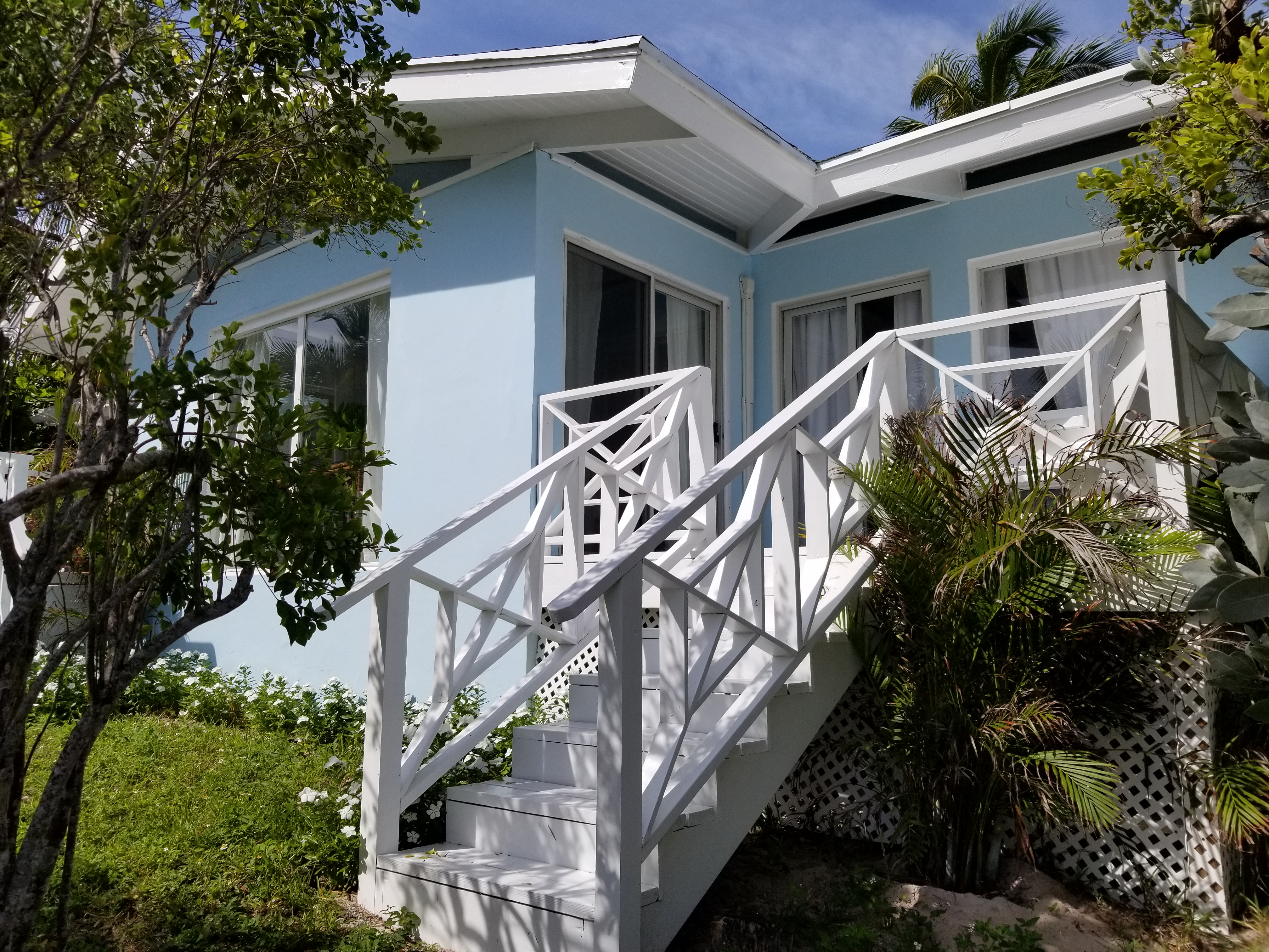 Charming Woodstar a 2 bedroom/1 bathroom cottage right on the beach.  The master bedroom has a king bed and the other has two twin beds.  The bathroom is only accessed through the master bedroom.  Enjoy wonderful sea breezes and great views from the deck.  Cottage has cable, internet, AC and generator.  Housekeeping is $15 per hour extra.