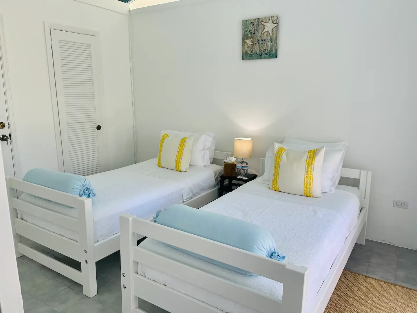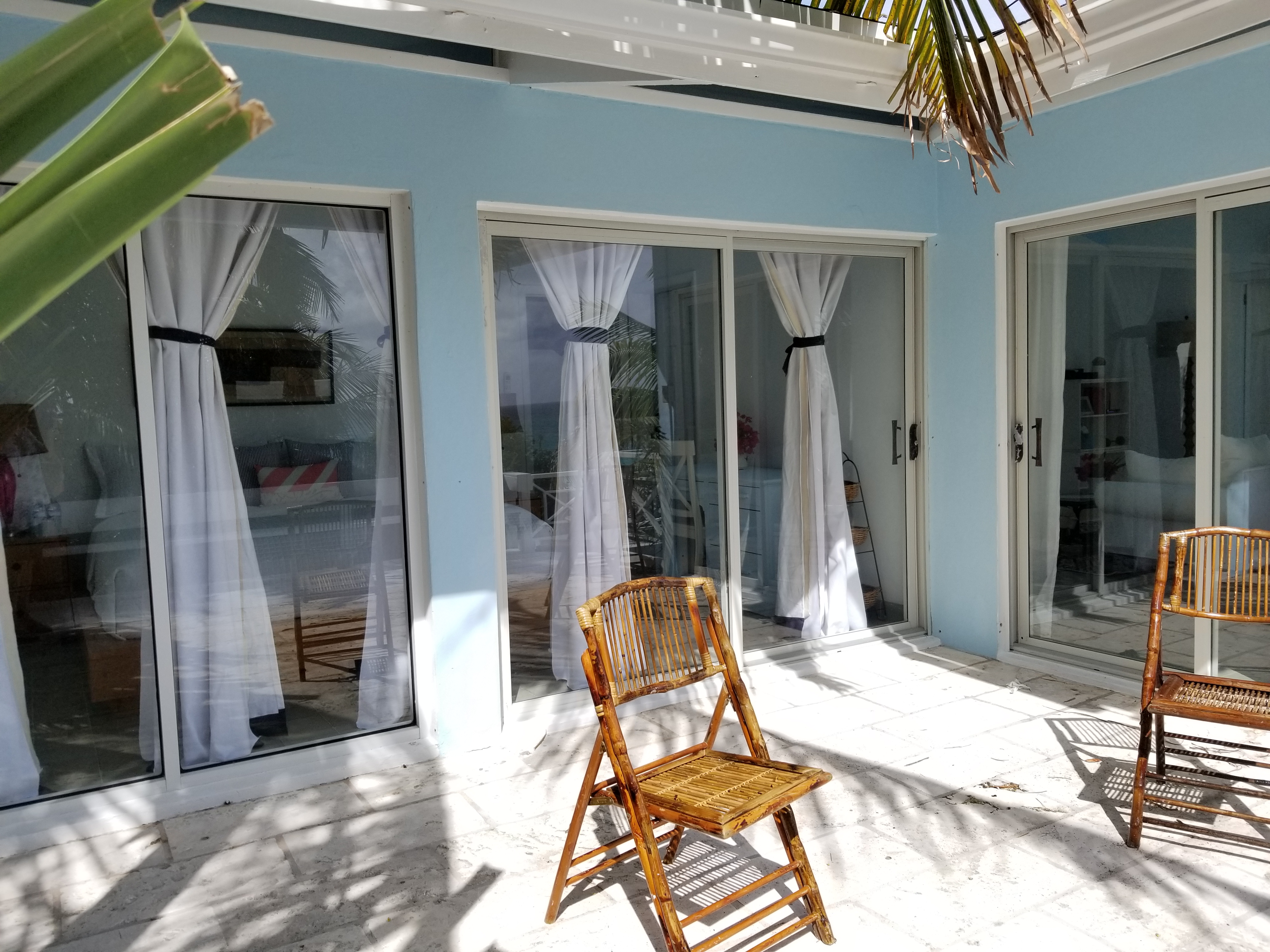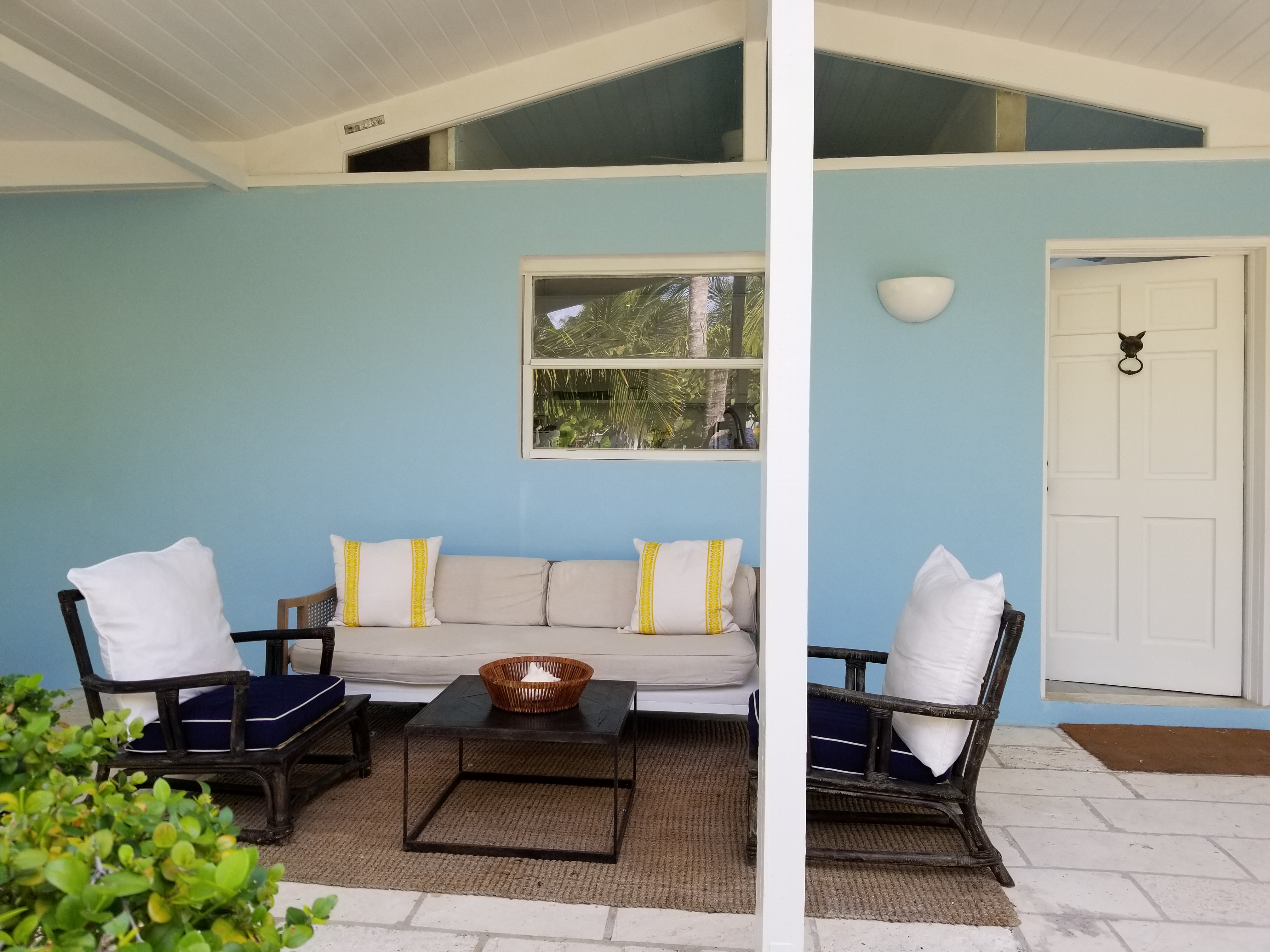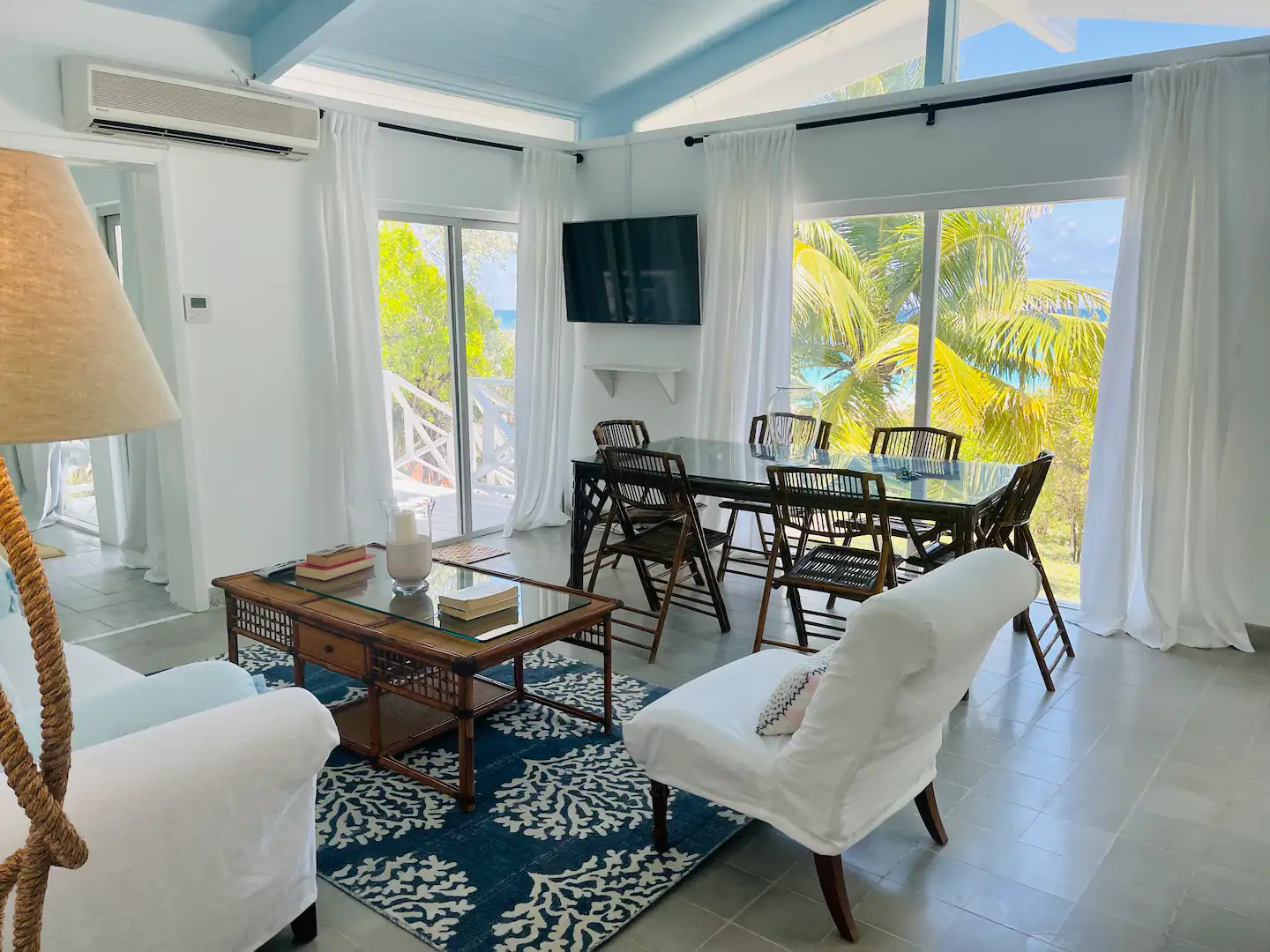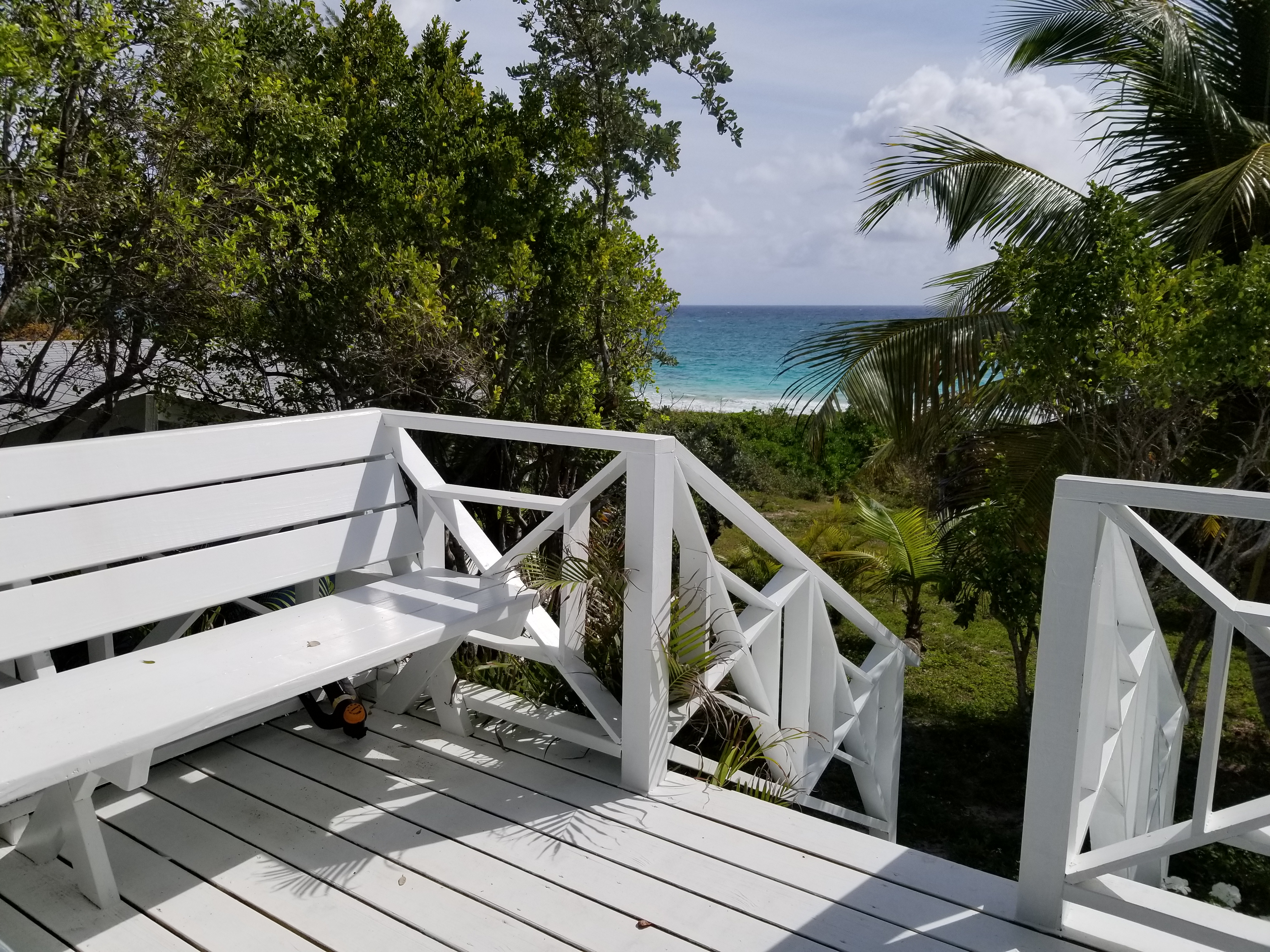 Charming Woodstar a 2 bedroom/1 bathroom cottage right on the beach.  The master bedroom has a king bed and the other has two twin beds.  The bathroom is only accessed through the master bedroom.  Enjoy wonderful sea breezes and great views from the deck.  Cottage has cable, internet, AC and generator.  Housekeeping is $15 per hour extra.