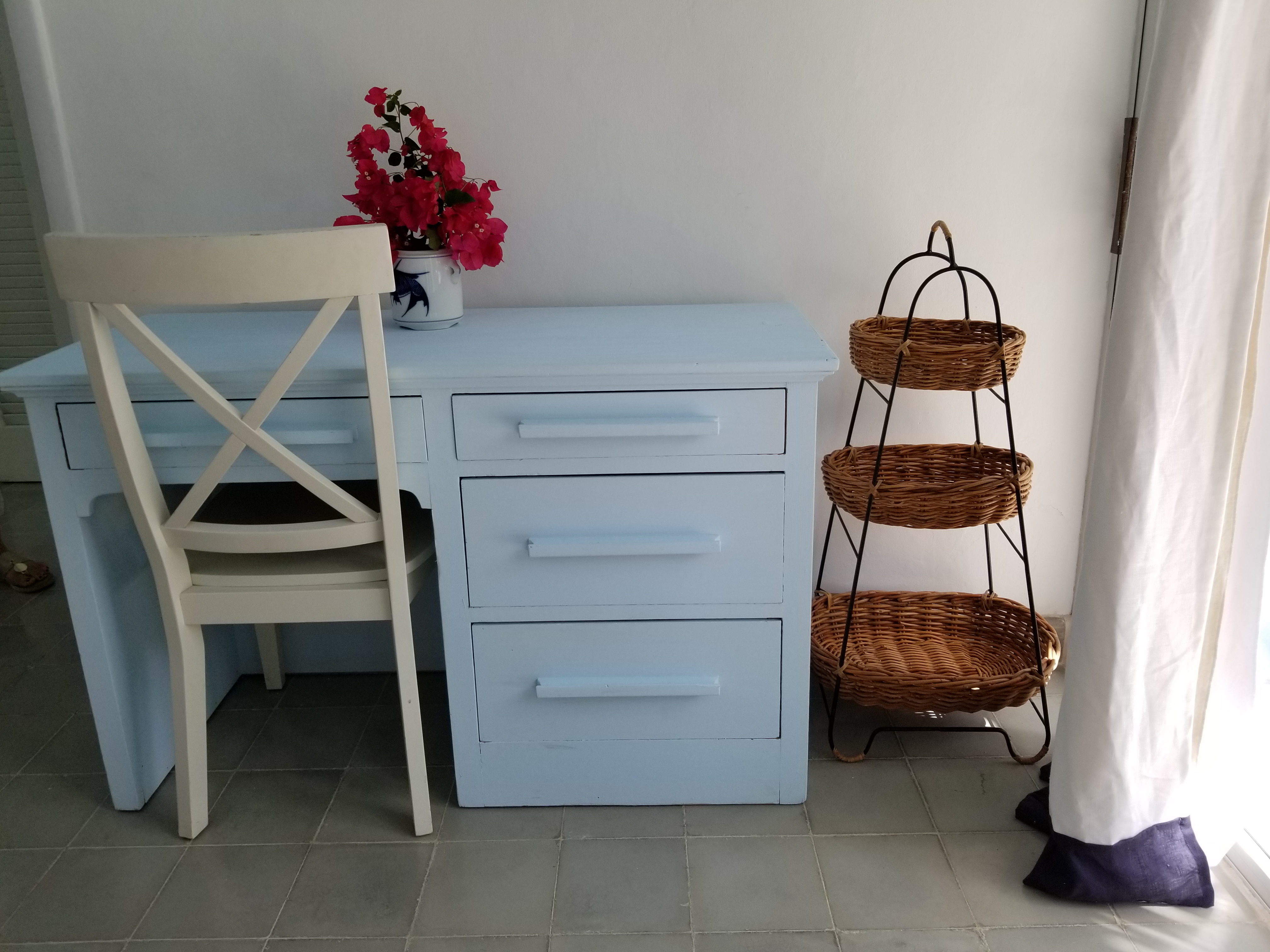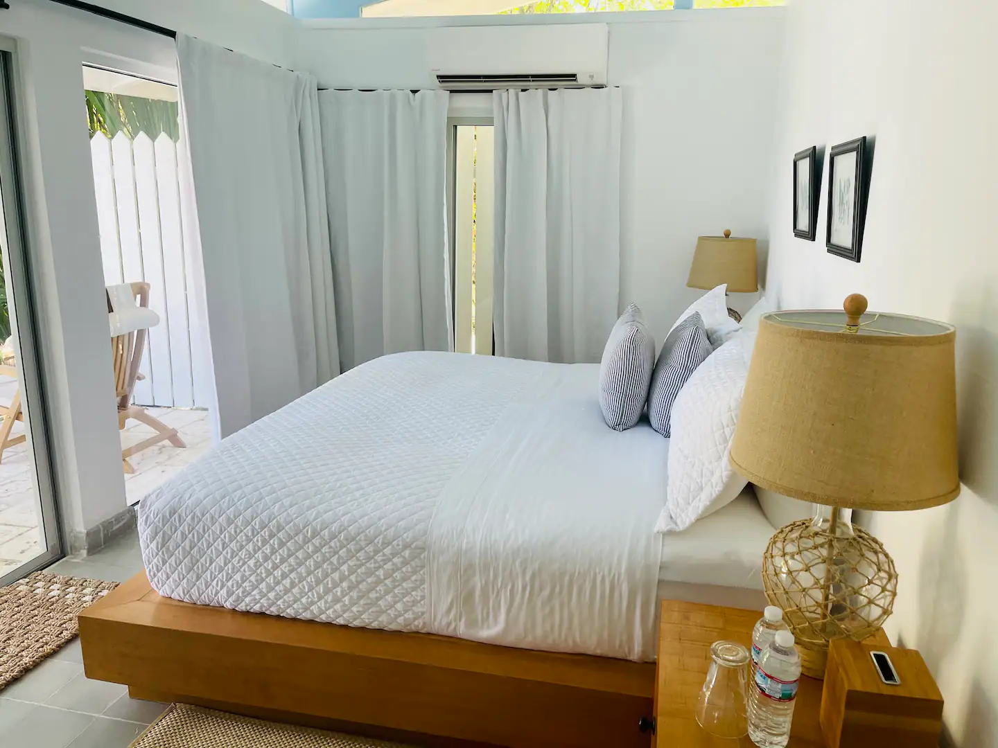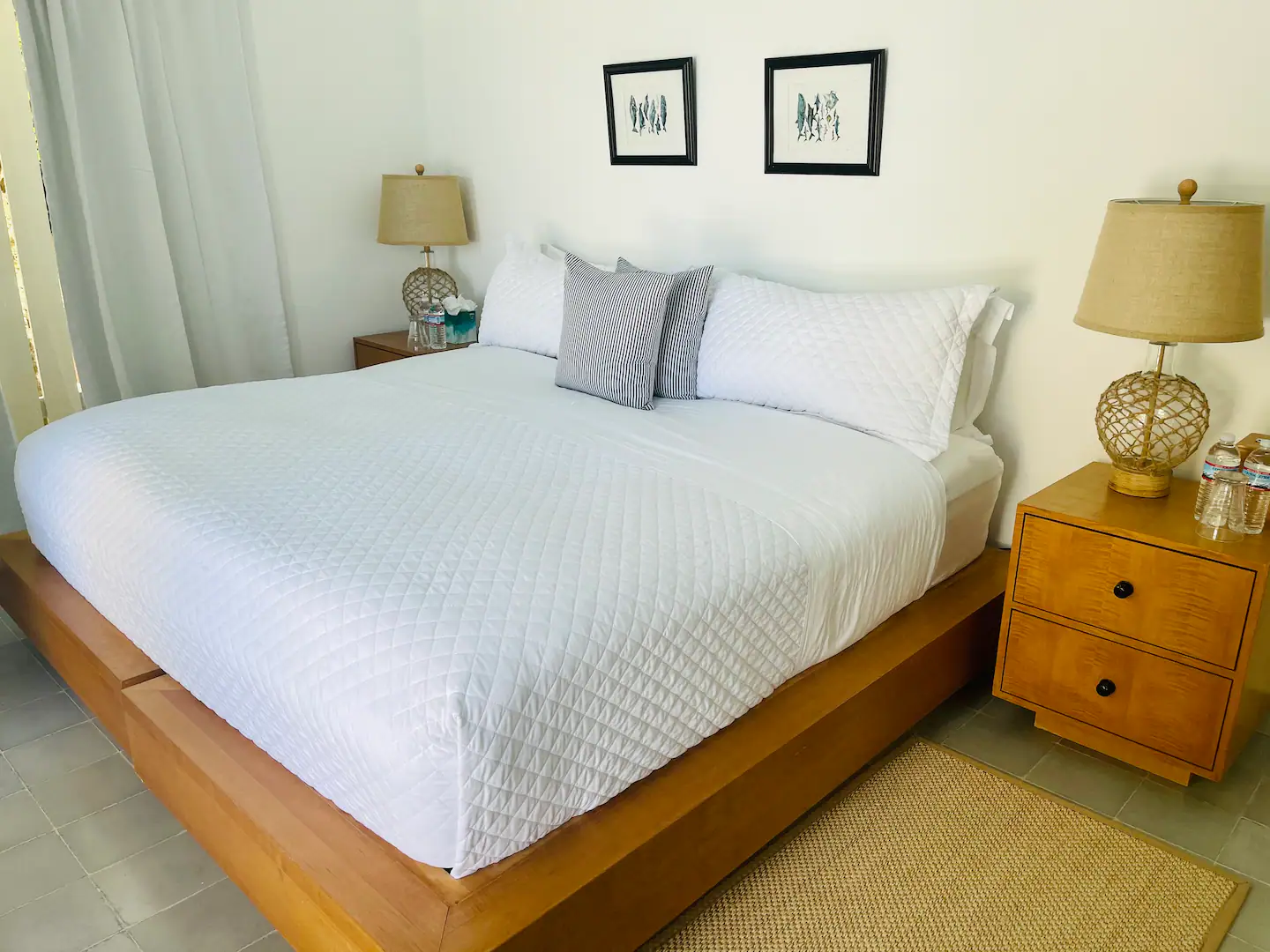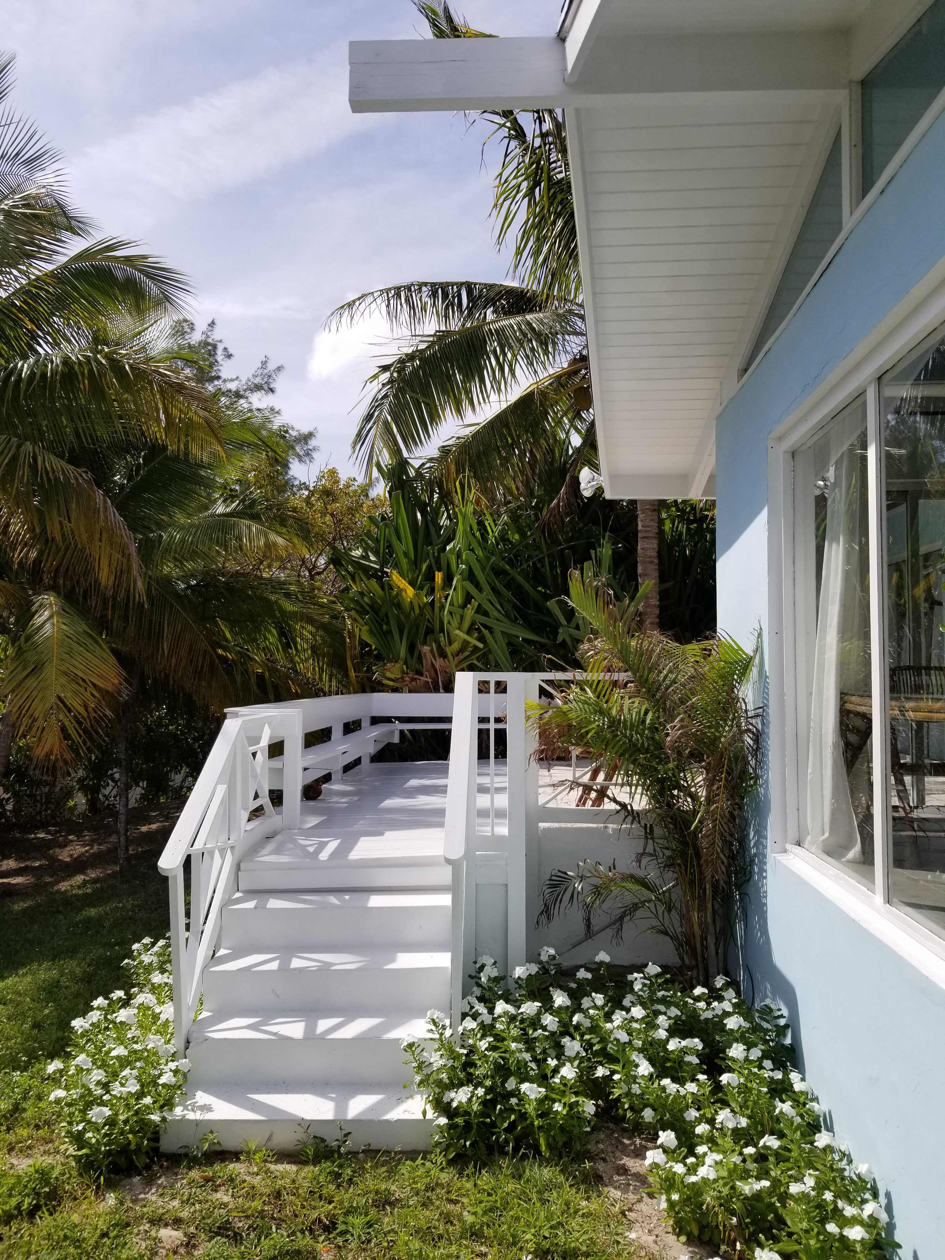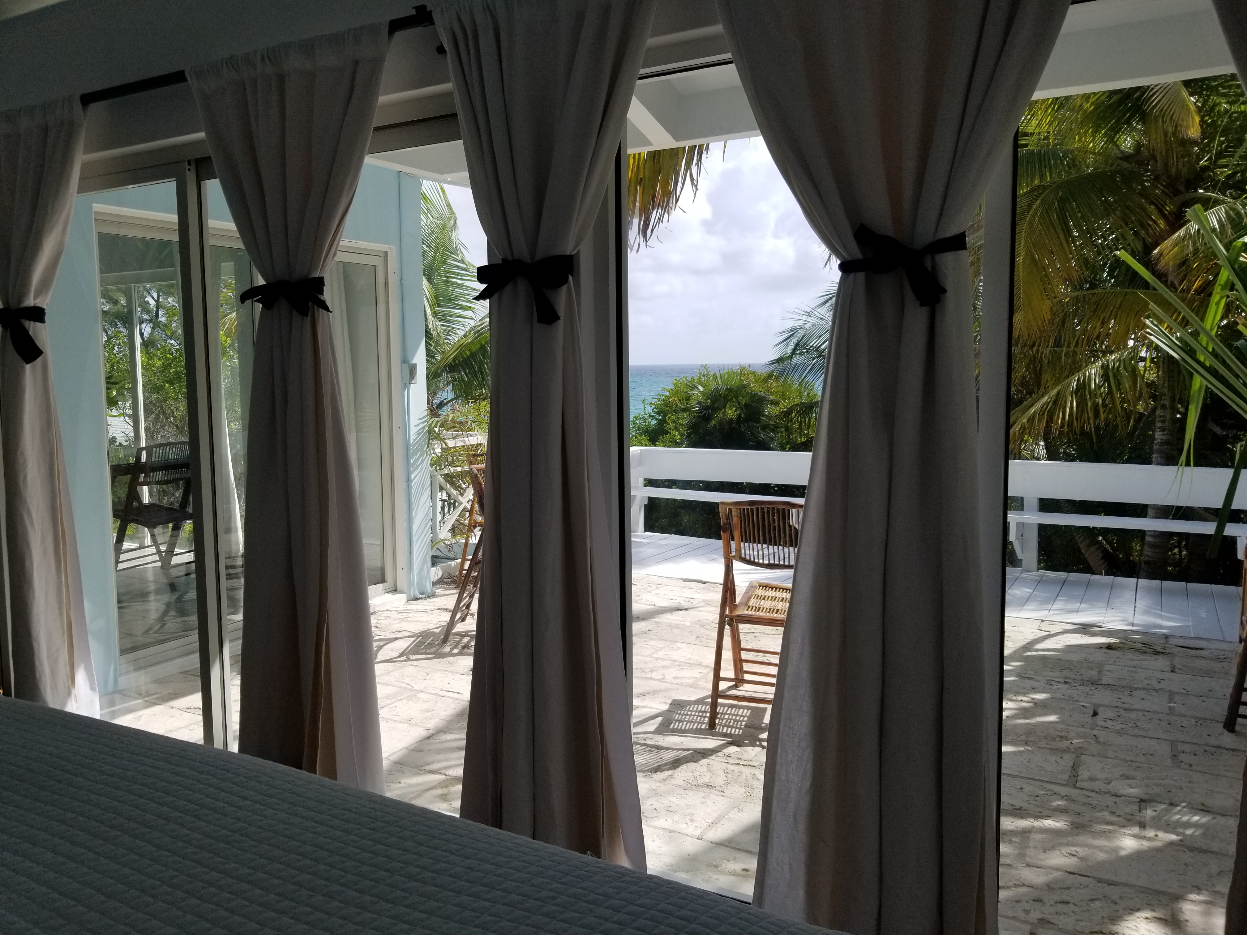 Charming Woodstar a 2 bedroom/1 bathroom cottage right on the beach.  The master bedroom has a king bed and the other has two twin beds.  The bathroom is only accessed through the master bedroom.  Enjoy wonderful sea breezes and great views from the deck.  Cottage has cable, internet, AC and generator.  Housekeeping is $15 per hour extra.